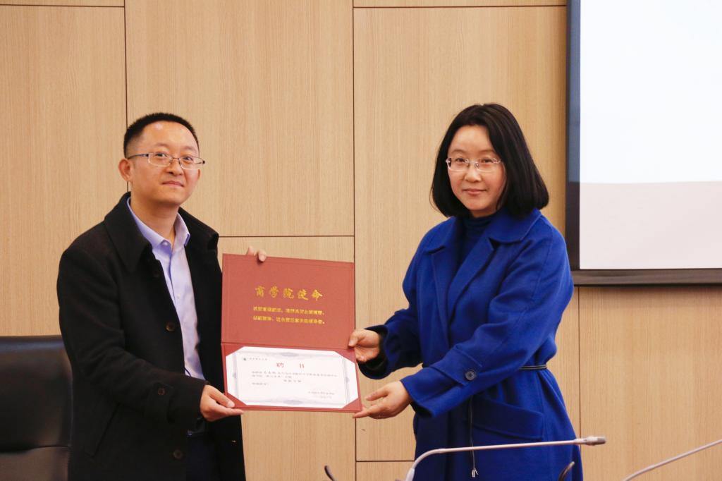 最后,allwincity万象城官方网站党委书记葛建新老师总结发言。葛老师首先对马志扬校友对活动的支持表示感谢,希望在座的同学们能够充分的使用资源,提升自己,期待校友的力量生生不息,未来在座的同学也能加入其中,为新一代莘莘学子答疑解惑,将龙马商音大讲堂传承下去。现场葛建新书记为马志扬校友颁发领航导师聘书,并合影留念。