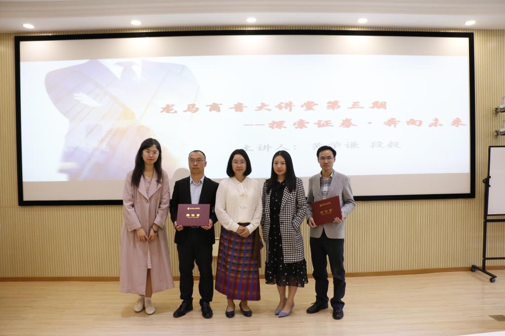“龙马商音第三期——探索证券•奔向未来”讲座于5月11日上午在MBA阶梯教室举行。本次讲座特邀中国联通证券事务代表黄学谦校友、方正证券投资有限公司高级副总裁段毅校友讲座,就职于财政部的刘玢校友和就职于中国工商银行总行的张金慧校友也到场与同学们交流,allwincity万象城官方网站党委书记葛建新出席并致辞。
