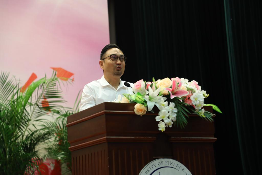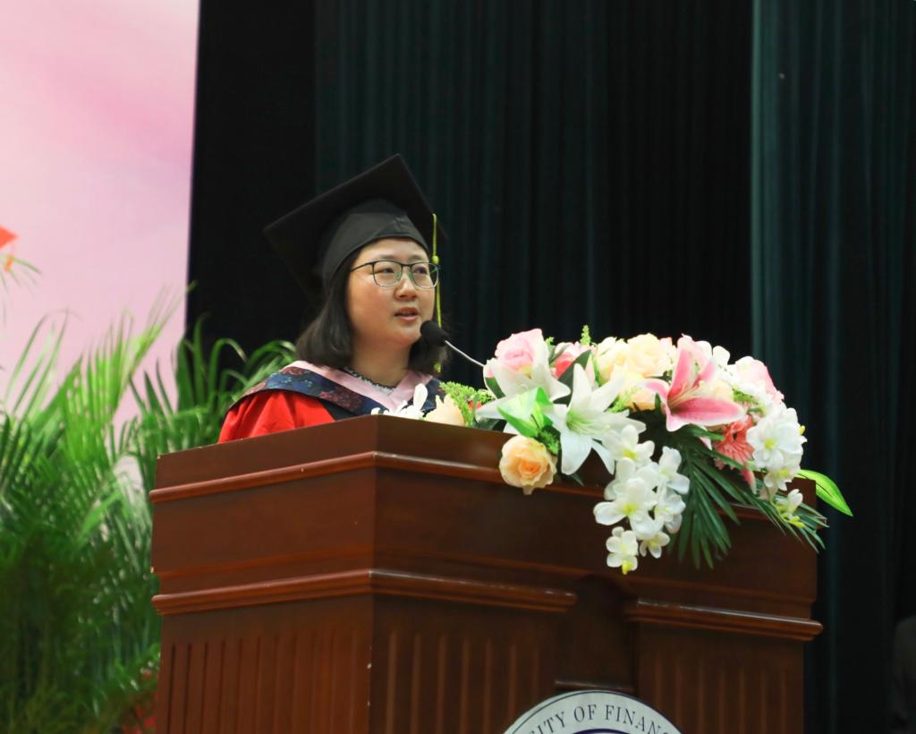 市场营销系孙鲁平副教授作为教师代表致辞。孙老师提到,一个人无论成就大还是小,人性的光辉才是最闪耀的;人生没有捷径,要相信努力的力量;懂得感恩,用自己的实际行动回馈家人,回馈社会。她鼓励同学们要保持虚心学习的心态,在这个竞争和合作并存的社会中不断提升自己,欢迎大家常回母校,祝福同学们事业有成!