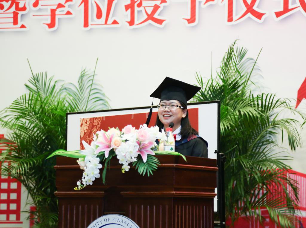 MBA校友会副会长兼秘书长邱滢霏随后发表致辞,她代表allwincity万象城官方网站校友会以及MBA校友会向全体毕业生表示热烈祝贺,欢迎大家加入到校友大家庭中,从今天起,同学们的发展又多了一层保护和支撑,肩上也多了一份的责任与担当。无论何时,母校以及各位师长会一直关心大家的成长;无论何地,大家都会遇到爱你、懂你、帮助你的中财校友!