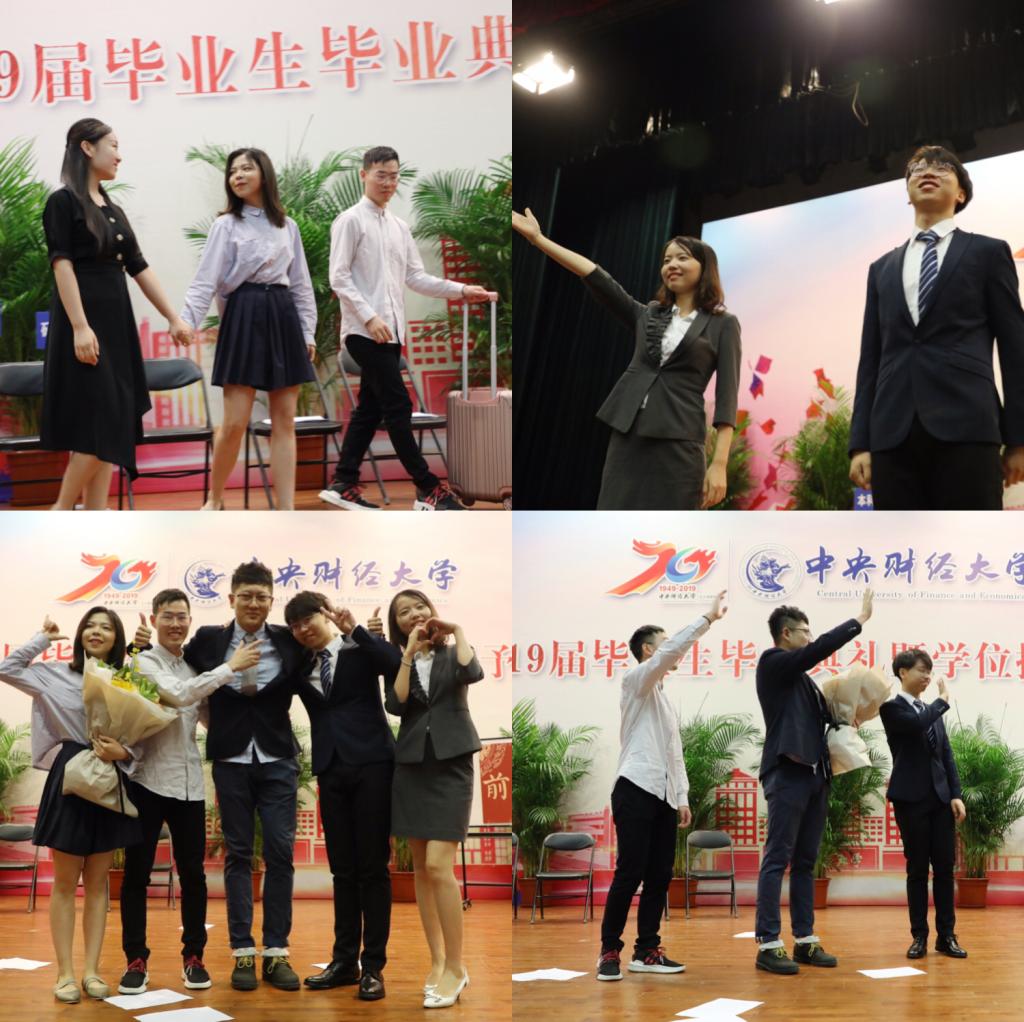 音乐响起,会场上演了一场精心准备的舞台剧,通过告别家乡、相遇中财、第一次穿上正装、结课仪式等片段回忆大学时光,仿佛昨天才刚刚相识的大家,今天便要各奔东西,整装再次出发,龙马担乾坤,铭记追梦的理想,未来可期!