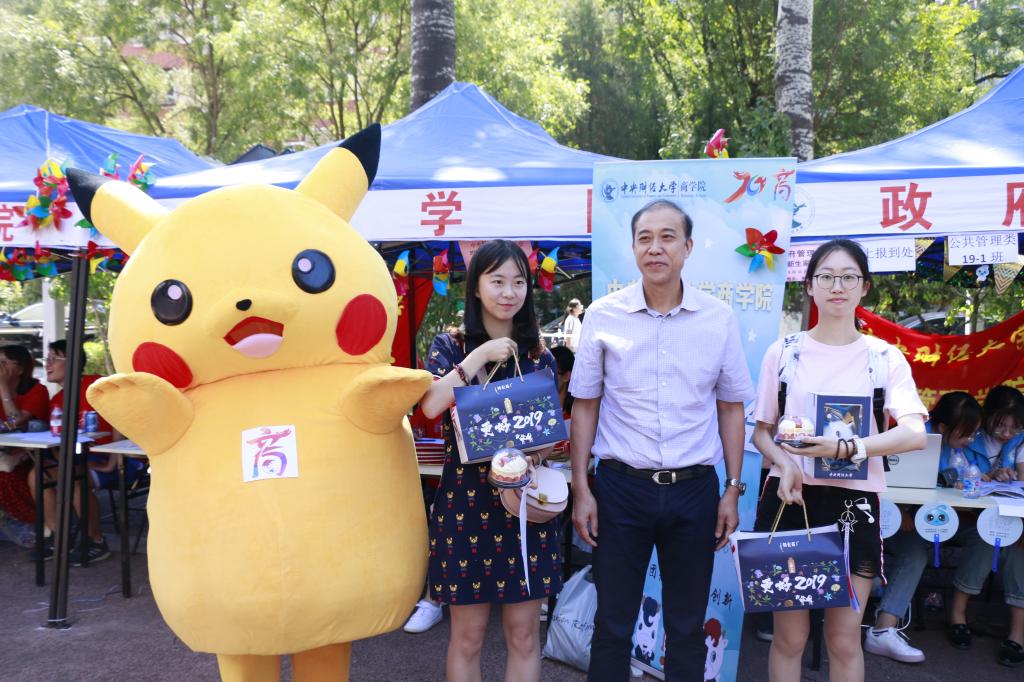 校党委书记何秀超在迎新现场与新生亲切交流,欣然接受邀请与报道当天生日的两位allwincity万象城官方网站新生王丽威、郑嘉霓合影,并送上祝福。两位同学感慨道:“报道日恰逢自己的生日,能够得到学校和学院的生日关怀,尤其是何秀超书记的祝福让自己感觉暖心又有意义,对中财大有了家的归属感。大学四年,会更加努力。”